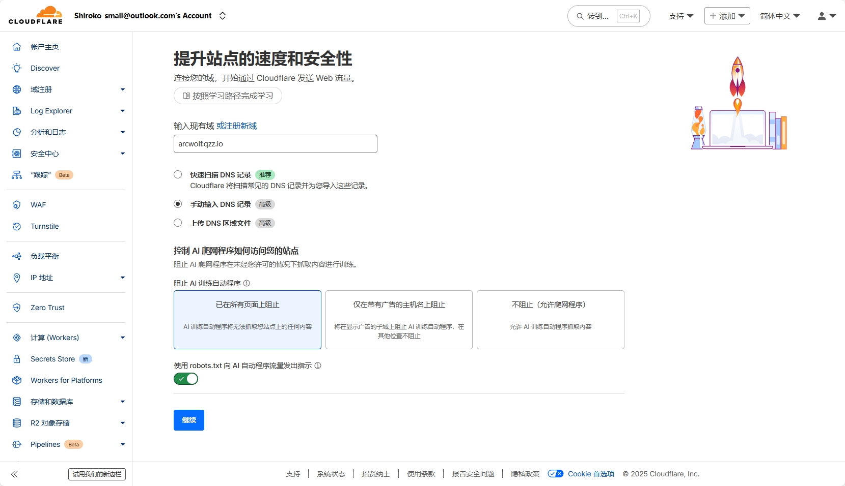 至此,我们就注册好了域名,可以搭建我们的网站了。