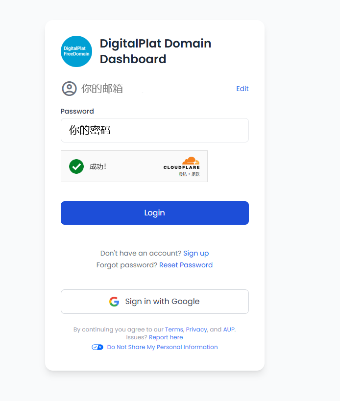 接下来,关掉刚才打开的网页,并打开这个链接:dash.domain.digitalplat.org